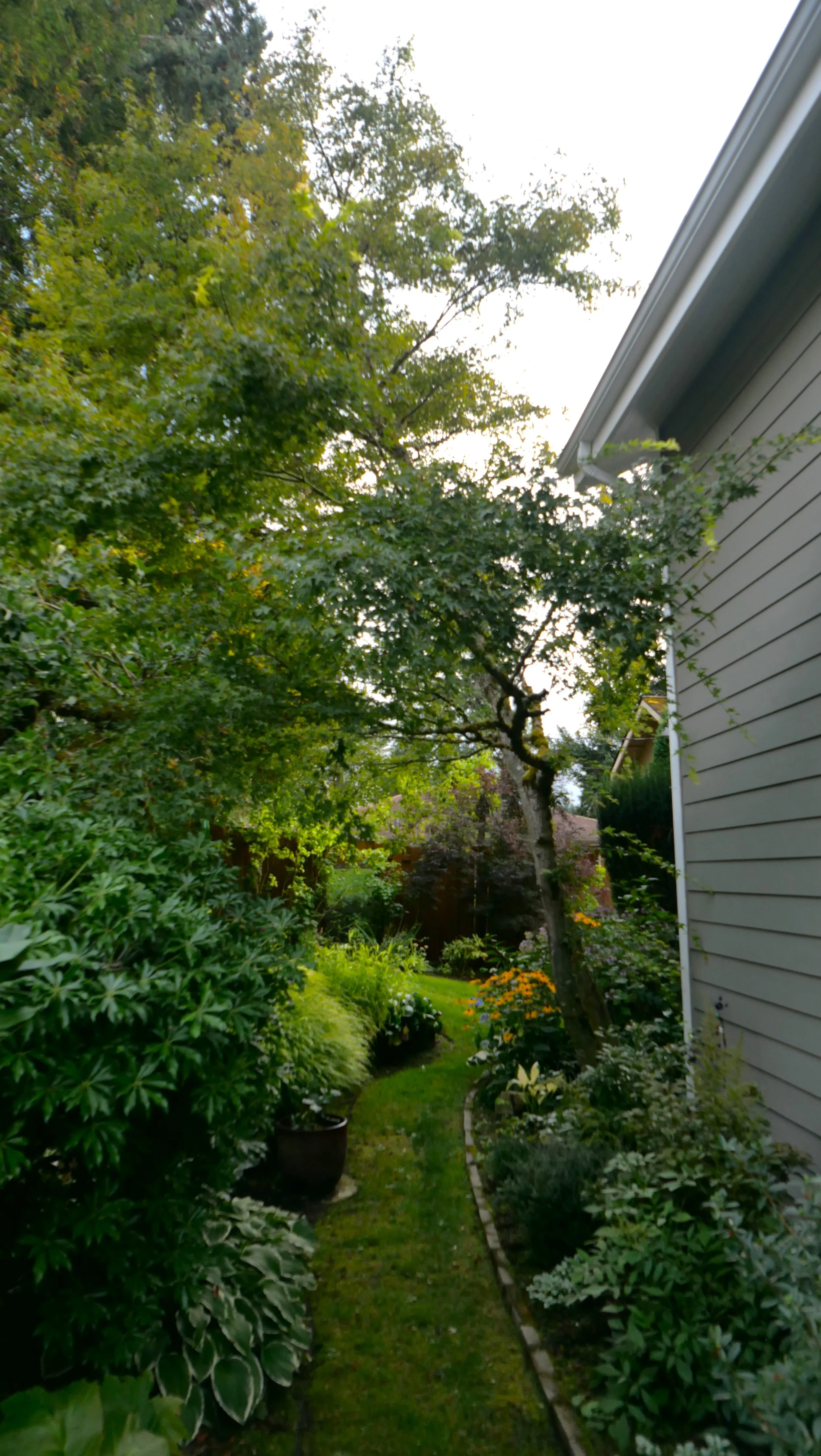 The first thing I did was to bring all the mature and overgrown shrubs back into proportion with the house and with each other. There have to be priorities established with every planting and the specimens themselves determine this. There is always an awkward phase when downsizing mature shrubs. The client had to trust that the changes were going to radically improve the environment. Now it’s one year later and the gardens have taken on a mystique that only such a unique circumstance can produce.