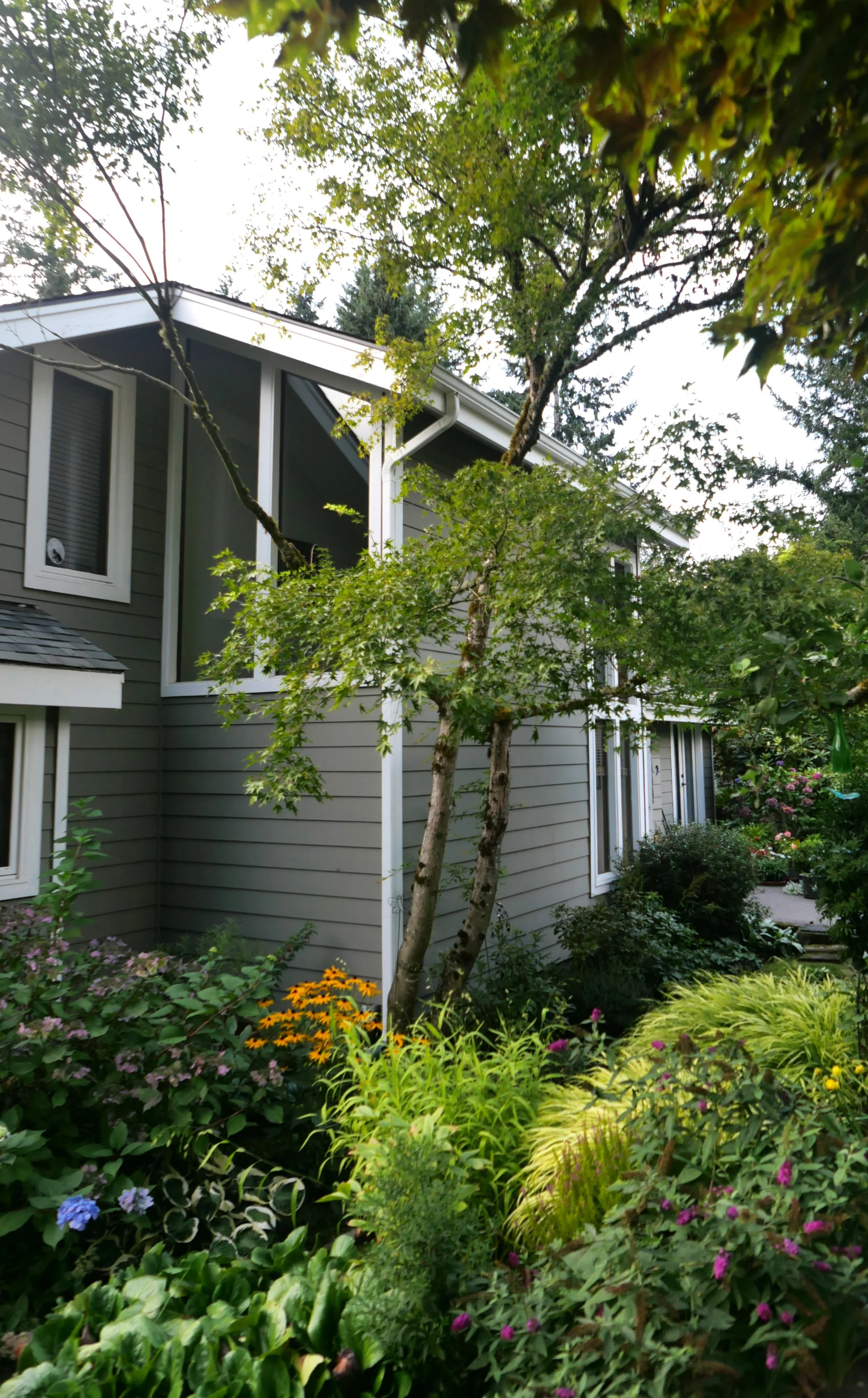 I designed a landscape with a hint of Mediterranean in front and Japanese influence in back. By sculpting the mature trees, adding placed rock raised flower beds, and planting shrubs asymmetrically… the neglect turned to warmth.